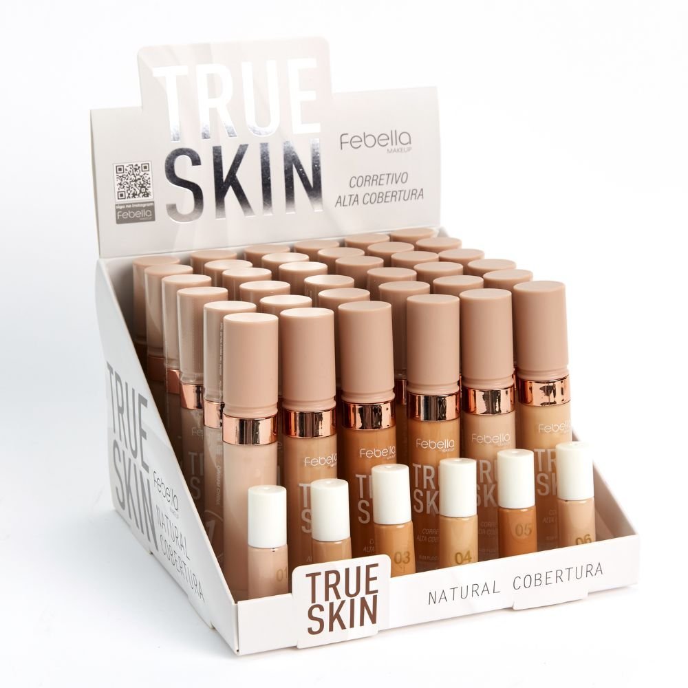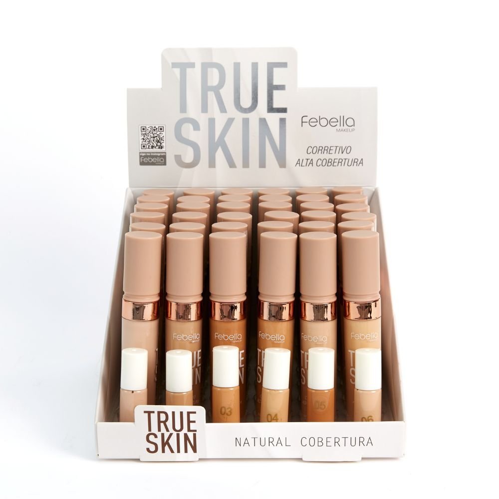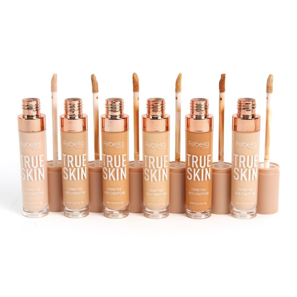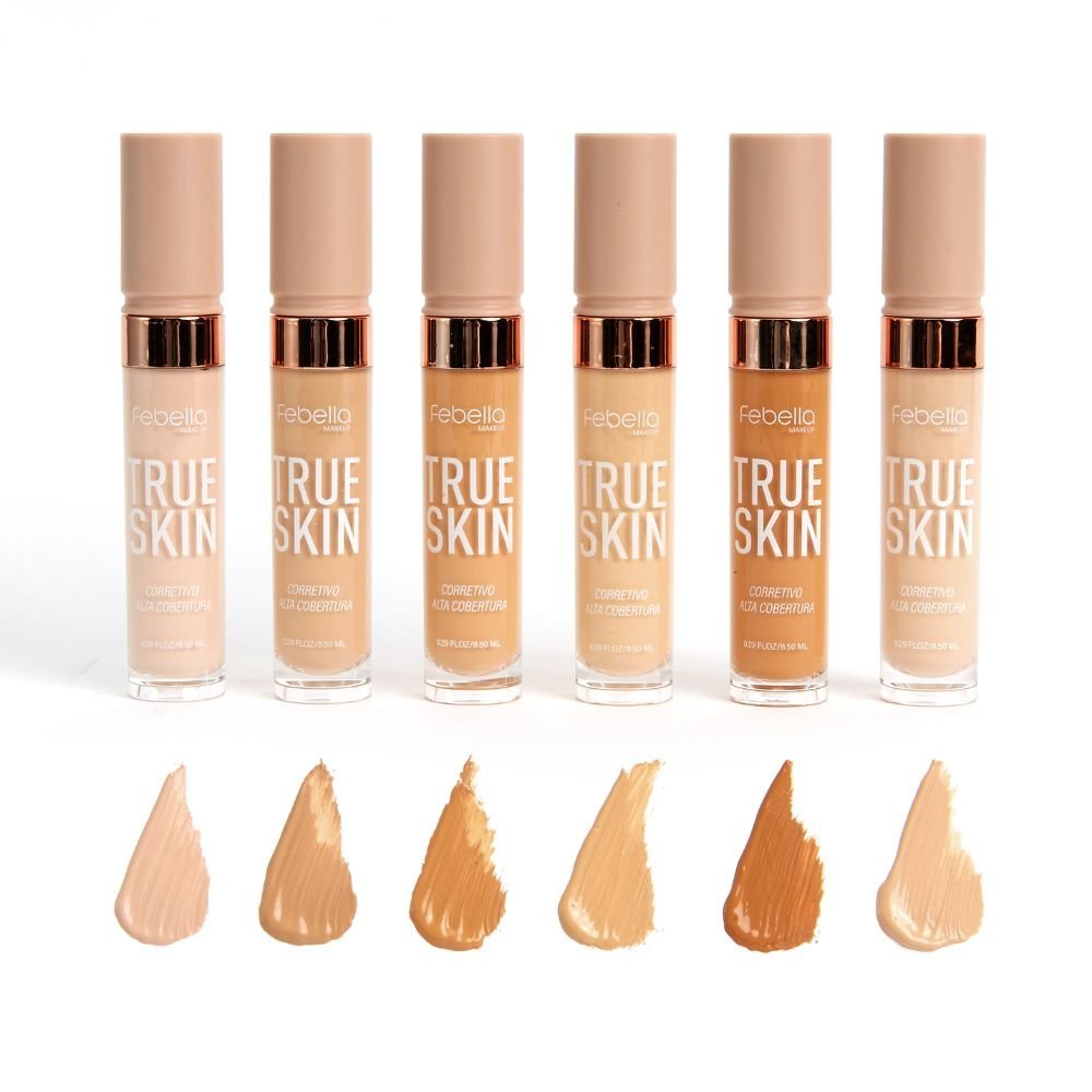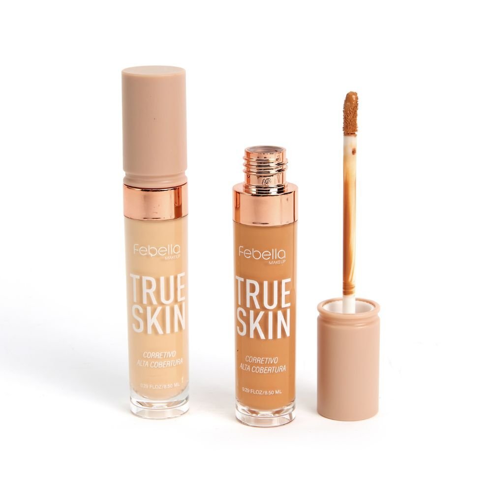 O Corretivo Líquido True Skin Febella neutraliza tons, camufla manchas, ilumina regiões do rosto e também é um super aliado daquela pele com aspecto de saúde e hidratação.
